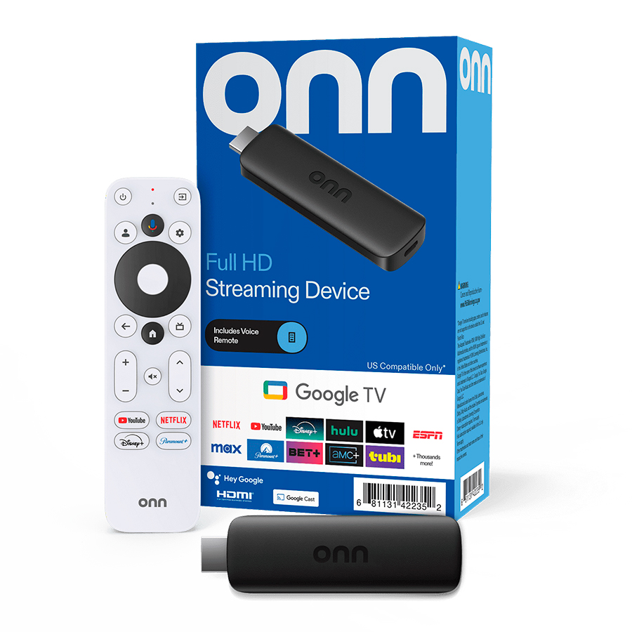 Onn Dispositivo de Transmisión HD Full, Google TV: Transmisión Rápida, Almacenamiento de 8 GB, RAM de 1,5 GB, Control Remoto con Control por Voz